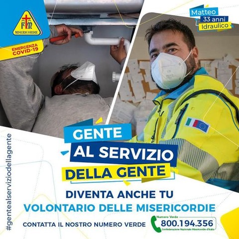 Chi ancora si volesse mettere a disposizione potrà riempire il form https://forms.gle/PGGmTtjpqJJjFSkXA , contattare il numero verde nazionale 800.194.356 o inviare una mail a gentealserviziodellagente@misericordie.org .