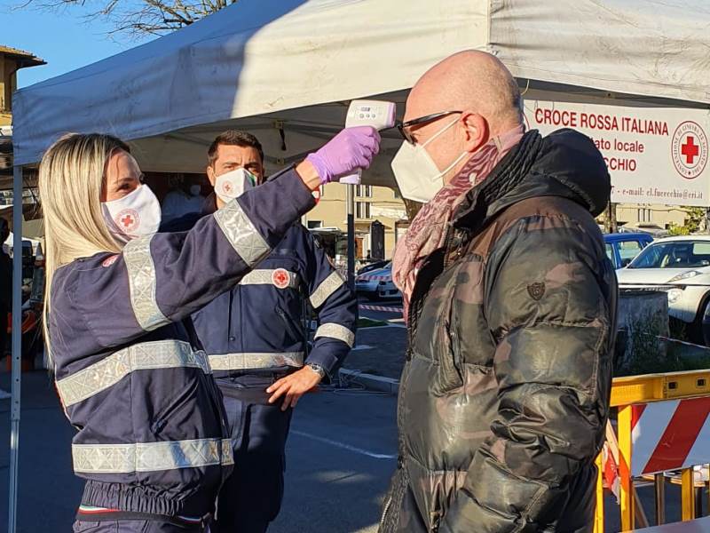 Tre varchi distinti, controlli sul numero di accessi col conta-persone, misurazione della febbre e utilizzo di gel sanificante. Sono state queste le linee guida che a Fucecchio hanno accompagnato il primo mercato settimanale da quando la Toscana è entrata in zona rossa. Un mercato che questa mattina si è svolto dunque nel pieno rispetto della normativa vigente sebbene in forma ridotta, ossia con i banchi dei soli generi alimentari, gli unici consentiti dall'ultimo DPCM nelle regioni rosse. Fondamentali, per garantire la massima sicurezza, sono stati il contributo della Polizia municipale e del personale del Comune e la collaborazione della Croce Rossa Italiana, presenti in piazza XX Settembre per monitorare la situazione e controllare che tutto si svolgesse secondo le disposizioni anti covid.