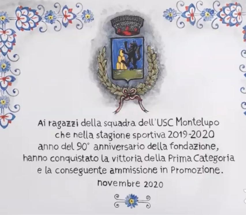 Le autorità comunali, in primis nelle figure del Sindaco Paolo Masetti e dell’Assessore allo Sport Simone Focardi, accompagnati dagli altri assessori e consiglieri, a nome di tutta la cittadinanza monte lupina, hanno consegnato, in maniera virtuale, una targa celebrativa completamente realizzata in ceramica alla società sportiva e un attestato di orgoglio e congratulazioni a tutti colori che hanno partecipato e reso glorioso l’importante traguardo sportivo raggiunto.