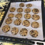 Lasciare risposare in frigo per circa 20 minuti. Poi estrarlo, formare delle palline o dischetti e disporle distanziate su una teglia con carta forno, perché cuocendosi si espandono un po’. Cuocere per 15 minuti a 190 gradi circa finché i cookies non saranno dotati. Tirarli fuori dal forno e lasciarli freddare su una griglia. Anche se inizialmente possono sembrare di consistenza molto morbida dopo qualche minuto di raffreddamento raggiungeranno la giusta consistenza.