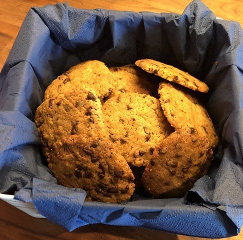 Irene ha provato una ricetta originale per fare i Cookies ma ha aggiunto un po' di farina semi-integrale all'impasto, sono venuti buonissimi, fragranti e croccanti.