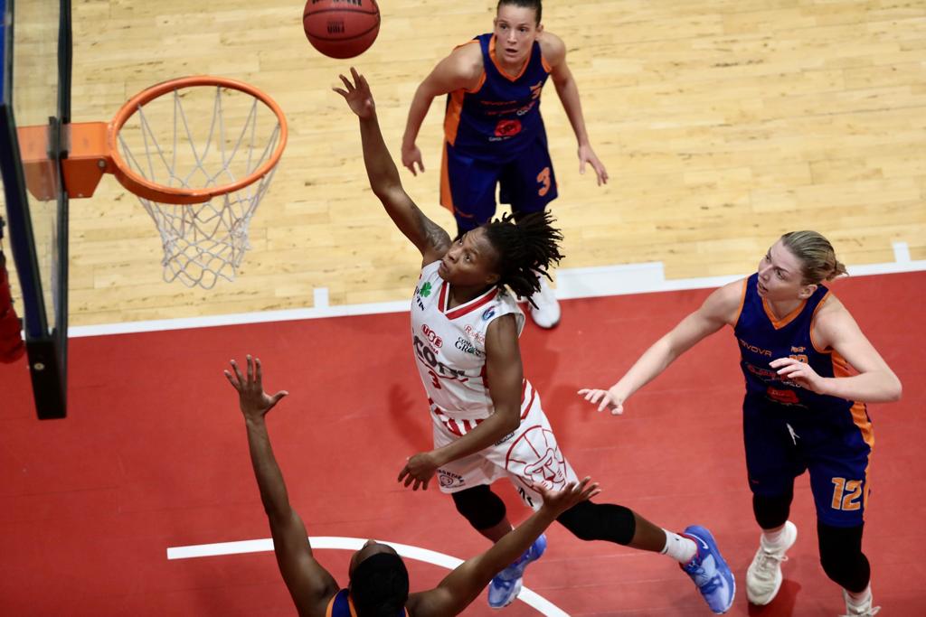 Che la Scotti abbia intenzioni serie lo si capisce sin dall’avvio. Smalls e Ruffini portano subito il punteggio sul 7-0 mentre l’americana Mc Cray commette subito due falli. La forbice inizia subito ad allargarsi con Ravelli e ancora Smalls e, sul 14-4, coach Paciucci prova a rifugiarsi in timeout. Ma la musica non cambia visto che c’è subito un altro parziale di 5-0 e, dopo il terzo fallo di Mc Cray, arrivare al 22-4 è un amen fino al 25-8 del primo intervallo.
