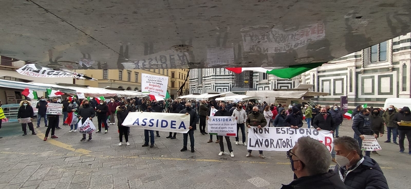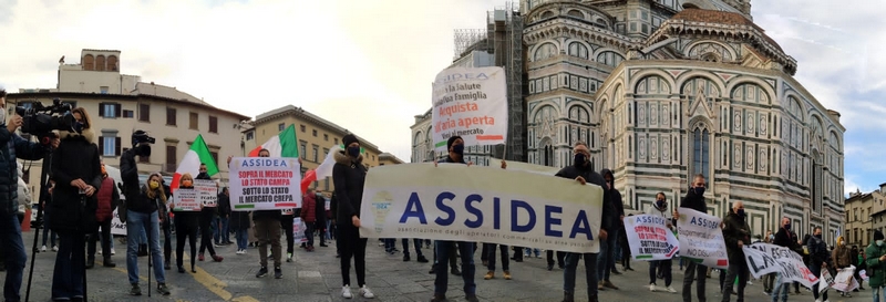 A Firenze, in una piazza Duomo gremita e nel rispetto delle disposizioni sulla sicurezza, gli ambulanti, provenienti da ogni parte della Toscana hanno manifestato chiedendo alle istituzioni di “adoperarsi per una rivalutazione delle misure adottate nel DPCM del 3 novembre, con l'obbiettivo di riaprire i mercati a livello nazionale”. E proprio alla manifestazione degli ambulanti che hanno inscenato il ‘mercato fantasma’ sono intervenuti, oltre a rappresentanti di tutte le forze politiche anche il presidente della Regione Toscana Eugenio Giani e l’assessore regionale alle attività produttive Leonardo Marras portando la loro solidarietà e il loro sostegno alla categoria. “La classificazione della Toscana tra le zone rosse ha di fatto profilato uno scenario di norme dall'enorme difficoltà interpretativa che non trovano omogeneità di applicazione, anche tra comuni limitrofi in tutto il territorio regionale – ha spiegato Alessio pestelli, presidente Assidea - Un sistema di diritto credibile è quello che riesce a garantire i principi di equità e di uguaglianza ed è dovere imprescindibile delle istituzioni affinché questo avvenga”.