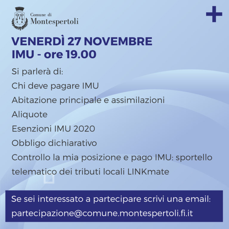 Tutta la cittadinanza è invitata a partecipare, la videoconferenza si terrà alle ore 19.00, previa iscrizione scrivendo a partecipazione@comune.montespertoli.fi.it.