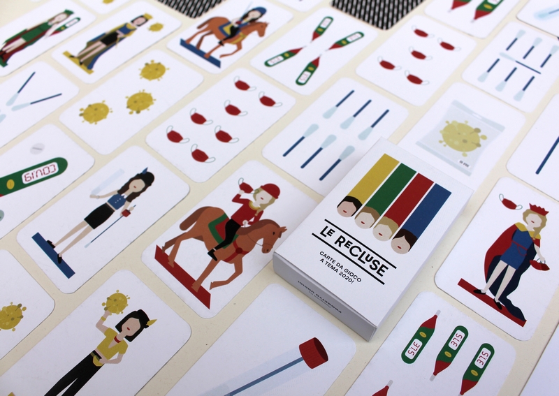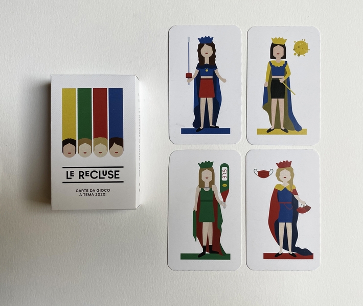 Una spada che si trasforma in tampone, un bastone che diventa termometro, una coppa in una mascherina e denari tramutati in germi virali: sono “Le Recluse” le carte da gioco a tema 2020, rebranding creativo delle tradizionali napoletane, nate durante il periodo di isolamento forzato di quattro amiche che contemporaneamente sono risultate positive al Covid-19. Tra queste l’ideatrice e illustratrice del progetto Laura Marianera, dello studio grafico fiorentino Progetto Undici.