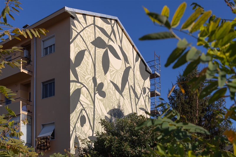 Lo street artist Fabio Schirru, in arte Tellas ha completato la sua opera in via Bertoloni, dove ha realizzato un murale di 160 mq sulla parete di un immobile di edilizia residenziale pubblica gestito da ERP Massa-Carrara. «L’opera d’arte pubblica di via Bertoloni - spiega l’artista Tellas - fa parte di una nuova serie a cui sto lavorando chiamata "Mimesi" e cominciata a Ragusa con il progetto "Bitume" . Ora sto cercando di rendere ancora più dettagliata questa ricerca che mira a rendere più minuziosi i colori che si ispirano alle aree verdi che stanno attorno agli edifici e alle pareti che vado a dipingere». E nel caso della parete dell’immobile di via Bertoloni, ad essere richiamata è la pianta acquatica Cyperus, un finto papiro che si trova all’interno del giardino condominiale dell’alloggio popolare di via Bertoloni.