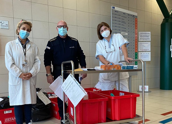Grazie al gioco di squadra tra gli operatori sanitari, le guardie giurate che si occupano dell’attività di check point, gli amministrativi della portineria, ogni giorno viene movimentato un numero considerevole di pacchi in entrata e in uscita per garantire il flusso di materiale essenziale per i pazienti ricoverati.