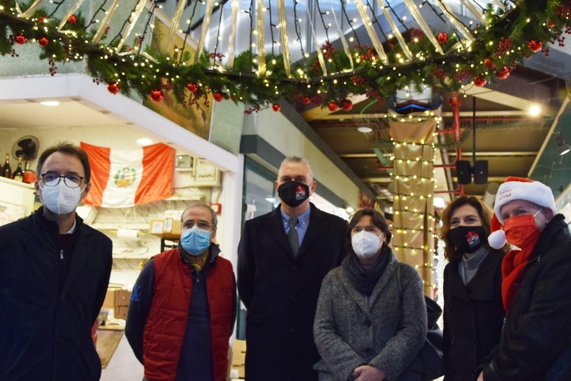 Dietro lo slogan 'Firenze non si spegne', lo Storico Mercato Centrale si accende con le luminarie, presentate alla città questa mattina, che faranno luccicare il piano terra per tutte le festività regalando ai fiorentini un'atmosfera degna del Natale, nonostante l'emergenza sanitaria che stiamo attraversando. Il mercato non solo è stato addobbato a festa con le luci (sono quattro le illuminazioni sospese che sono state posizionate davanti ai quattro ingressi principali e 18 le colonne rivestite con tessuti di raso in oro e argento) e gli alberi decorati a tema ma ha anche realizzato un angolo del Natale con un banner su cui campeggia quello che è lo slogan dell'iniziativa: 'Firenze non si spegne'. Davanti alla piccola installazione, gli innamorati della città potranno immortalarsi in divertenti selfie ricordo. Il sabato inoltre, nell'angolo del Natale del piano terra, a riscaldare le festività ci saranno anche i nonni con la barba bianca della Compagnia di Babbo Natale che, sabato 12 dicembre e sabato 19 dicembre, raccoglieranno le letterine dei più piccoli.