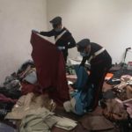 Nel corso dei controlli, sul tetto di una delle baracche i militari ritrovano i teli in pvc sottratti al richiedente ma, soprattutto, all’interno di una baracca chiusa, che i militari decidono di ispezionare, vengono trovati due televisori e diversi utensili elettrici per l’edilizia e attrezzi da lavoro nonché numerosi rotoli di pellame di vario colore e decine di sacchi in plastica chiusi con nastro da imballaggio.