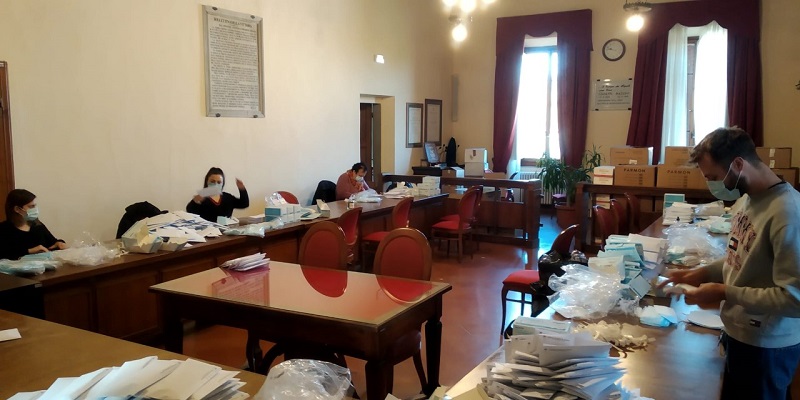 A provvedere all’imbustamento delle 55mila mascherine rivolte agli under 70, 5 a testa, sono stati i volontari civici nella sala del consiglio comunale. Il Comune aveva già provveduto a realizzare una prima tranche di distribuzione, due settimane fa, in favore dei cittadini over 70 consegnando a domicilio 21mila mascherine ad opera dei volontari delle associazioni socio-sanitarie e di protezione civile che in questo periodo di Covid hanno sempre dato la loro disponibilità e collaborato a tutte le iniziative proposte dall'amministrazione comunale.