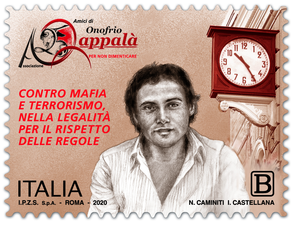 La vignetta raffigura un ritratto di Onofrio Zappalà, vittima dell’attentato terroristico alla Stazione di Bologna del 2 agosto 1980, affiancato, a sinistra, dalla scritta “CONTRO MAFIA E TERRORISMO, NELLA LEGALITÀ PER IL RISPETTO DELLE REGOLE”, identificativo dell’Associazione Amici di Onofrio Zappalà, e, a destra dall’orologio divenuto simbolo della strage di Bologna, in alto a sinistra, è presente il logo dell’Associazione.