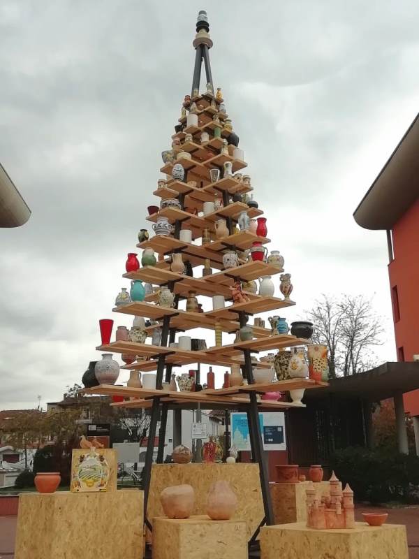L'elaborazione dell’albero che si trova in piazza dell'Unione Europea è un chiaro richiamo a un oggetto usato quotidianamente dai ceramisti, “il carrello incavigliato”.