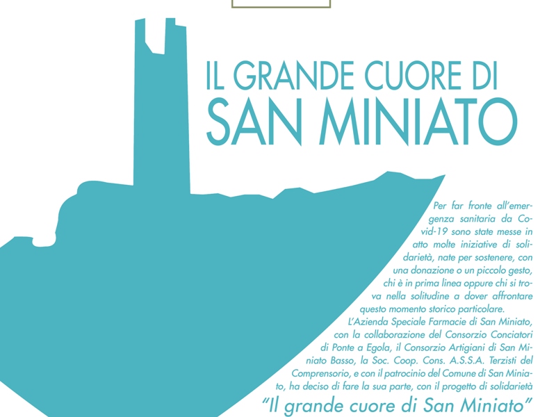 Un progetto di solidarietà che coinvolge il tessuto produttivo e artigianale del territorio, con lo scopo di donare kit di sicurezza anti-Covid a tutte quelle realtà che ne hanno più bisogno. E' questo l'obiettivo dell'iniziativa "Il grande cuore di San Miniato", messa in campo dall'Azienda Speciale Farmacie, dal Consorzio Conciatori di Ponte a Egola, dal Consorzio Artigiani di San Miniato Basso e dall'ASSA - Associazione Terzisti, in collaborazione con il Comune di San Miniato. Scuole, Centri diurni, Stella Maris e Casa di riposo sono le destinatarie di questa catena di solidarietà, alla quale possono partecipare tutte le aziende e i privati. Ogni kit, del valore di 200 euro, è composto da mascherine e gel disinfettanti che verranno messi a disposizione di una di queste realtà a scelta. L'acquirente avrà una regolare fattura e il pagamento avverrà tramite bonifico bancario, indicando nella causale "Il grande cuore di San Miniato". Ogni azienda che decide di partecipare può acquistare il numero di kit che desidera.