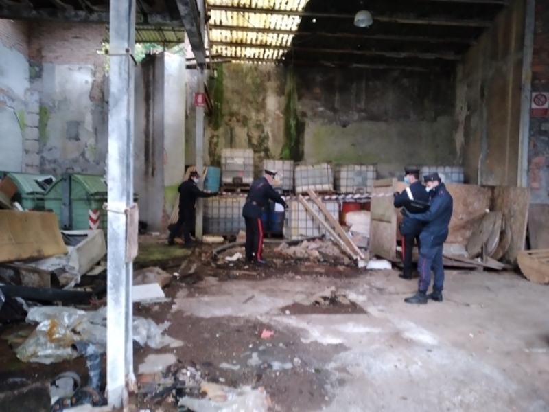 All’interno dei capannoni i Carabinieri hanno rinvenuto varie tipologie di rifiuti, tra cui decine di contenitori con capacità di circa un metro cubo contenenti liquidi presumibilmente acidi, sacchi in pessimo stato di conservazione contenenti sostanze polverose ancora da qualificare, ammassi di calcinacci, eternit, rottami di auto e bidoni di olio sintetico privi dei relativi coperchi.