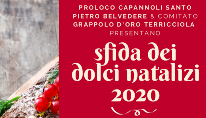 Per valorizzare i dolci e la tradizione, la Pro Loco Capannoli Santo Pietro Belvedere e il Comitato Grappolo d’Oro Terricciola lanciano la “Sfida dei dolci natalizi 2020”.