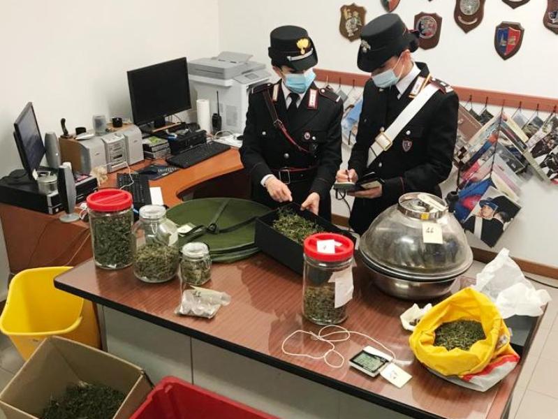 Approfondendo la ricerca dello stupefacente, sono stati rinvenuti poi in vari punti della casa numerosi barattoli contenenti marijuana pronta per lo spaccio, per un complessivo totale di circa 4 chilogrammi. Sono stati trovati anche alcuni grammi di hashish e la documentazione relativa alla contabilità dell’attività illecita.
