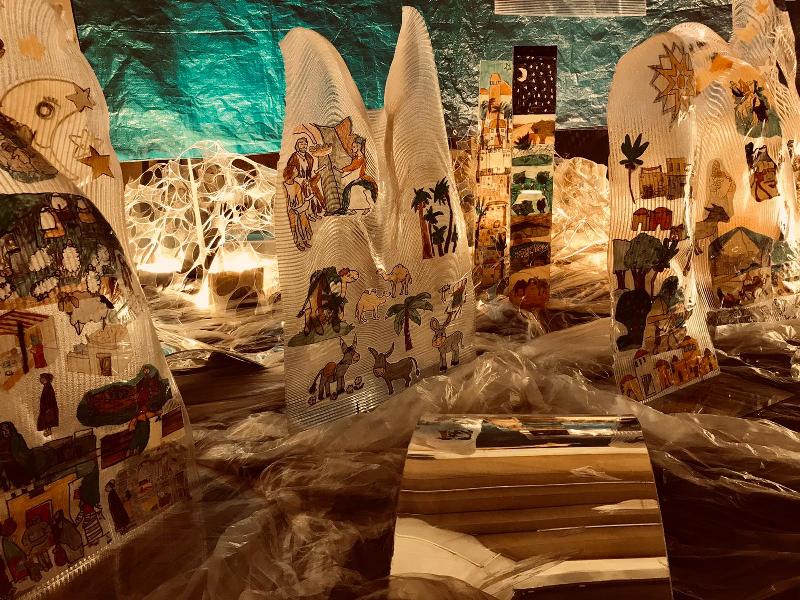 Un presepe di trasparenze e colori, forme che prendono vita con la luce riflessa. Un paesaggio sospeso tra terra e cielo, leggero e allo stesso tempo incisivo nel suo messaggio di bellezza e speranza. E’ il presepe allestito in questi giorni in via Ferruccio (“La Costa”) frutto dell’impegno degli alunni delle Scuole d’Infanzia e Primarie dell’Istituto Comprensivo e delle Scuole Paritarie di Castelfiorentino e alla collaborazione con l’Atelier Dall’Osso, che ha donato alle insegnanti i materiali e accompagnato con una preziosa consulenza tecnica il lavoro di allestimento.