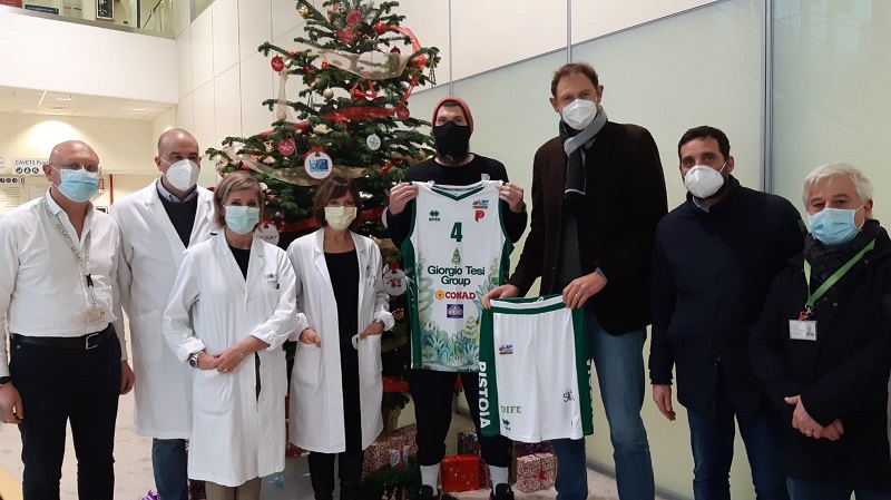Alla breve cerimonia di donazione ha partecipato anche il Sindaco di Pistoia Alessandro Tomasi. Erano presenti anche i giocatori della squadra cittadina di Basket.