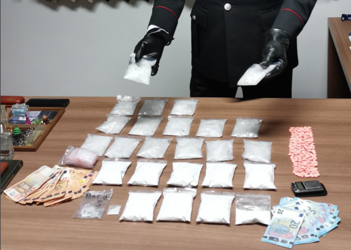 Da alcuni giorni il cittadino cinese, già noto alle Forze dell’Ordine per i suoi trascorsi giudiziari, veniva monitorato dai Carabinieri che peraltro avevano già arrestato nel 2018 proprio per detenzione illegale di sostanze stupefacenti, il quale era stato più volte notato accedere nell’abitazione in cui aveva preso in locazione la stanza utilizzata come luogo di deposito e confezionamento della sostanza per poi recarsi dai presunti “clienti”, generalmente propri connazionali. Quindi ieri sera è stato fermato mentre percorreva a piedi la via Roma e nel corso di una perquisizione personale trovato in possesso di alcune dosi di Ketamina e Shaboo, mentre nel corso della successiva perquisizione estesa nella stanza in suo uso veniva rinvenuto il restante quantitativo di stupefacente, oltre a materiale per il confezionamento delle dosi. A suo carico è stata sequestra anche la somma contante di circa 1.000 euro, ritenuta provento dell’attività illecita.