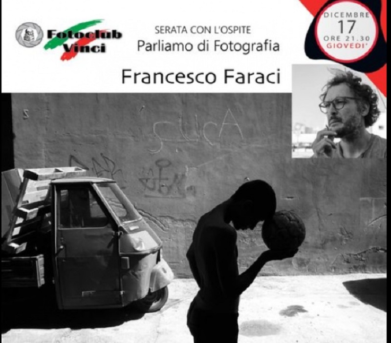 Il Foto Club Vinci è lieto di avere come ospite Francesco Faraci. La serata è aperta a tutti in diretta Streaming sulle pagine Facebook e You Tube del Foto Club Vinci Giovedì 17 Dicembre alle 21.30. Per seguire la diretta clicca su Parteciperò e condividi ad amici e fotografi l'evento.