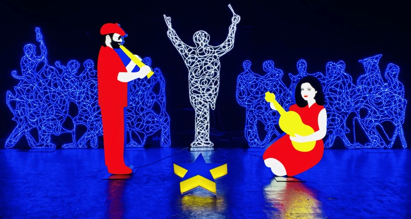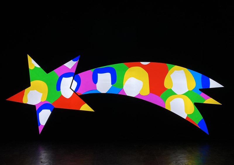 Lodola spiega di aver concepito l’installazione a partire da una riflessione sulla “condizione di sofferenza che viviamo oggi”. Questa, dice, “è stata l’ispirazione da cui sono partito per rappresentare una rinascita luminosa, un senso di speranza, la fiducia in un cambiamento. Come le figurine del presepe, noi siamo la manovalanza di un tempo sospeso, orchestrali senza pubblico, teatro senza copione, ribalta in attesa della sua star. Il collegamento con il Festival di Sanremo ha aggiunto un sapore pop, con i personaggi familiari che sono passati negli anni su quel palcoscenico. La grande stella cometa, conosciuta anche come ‘stella delle genti’, l’ho pensata appunto come un mare di facce in cui ognuno può immaginare la propria”.