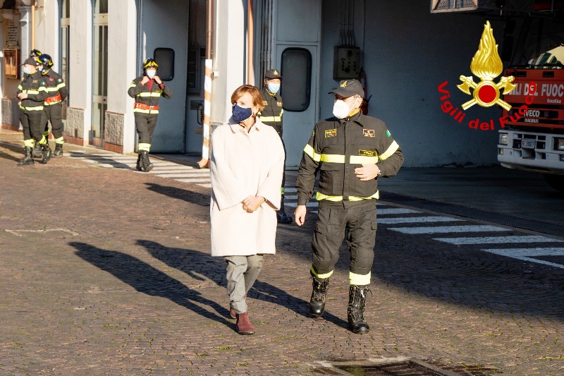 Questa mattina il Prefetto di Firenze Alessandra Guidi, accolta dal Comandante Arch. Gennaro Tornatore e dal Vicario Ing. Paolo Bruno De Paola, ha fatto visita presso la sede centrale di Firenze in Via G. la Farina, per lo scambio degli auguri in occasione delle prossime festività. Durante la visita sono stati mostrati i lavori di ristrutturazione di alcuni locali della caserma tra cui un’immagine iconografica della raffigurazione di Santa Barbara, installata all’interno del piazzale della caserma e inaugurata in occasione del Santo Patrono lo scorso 4 dicembre.