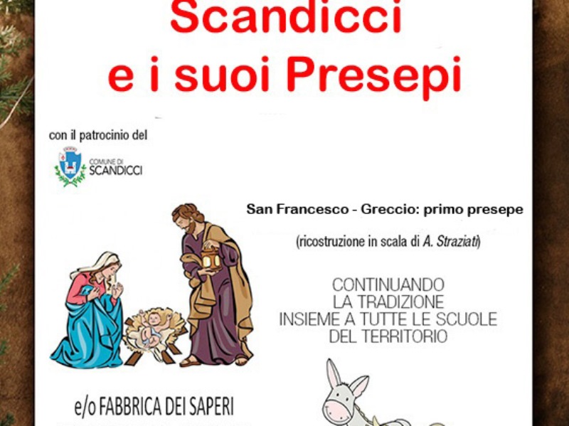 C’è anche la ricostruzione in scala del primo presepe della storia, quello realizzato a Greccio la notte di Natale del 1223 da San Francesco d’Assisi, all’interno di “Scandicci e i suoi presepi”, la mostra laboratorio per gli alunni delle scuole cittadine promossa dall’associazione Cui I Ragazzi del Sole presso la Fabbrica dei saperi (piazza Matteotti, 31), che quest’anno è visibile in video. La ricostruzione del presepe di Greccio è una realizzazione di Adolfo Straziati. La mostra ha il patrocinio del Comune di Scandicci ed è visibile da lunedì 21 dicembre 2020 a mercoledì 6 gennaio 2021.