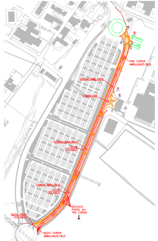 Sempre dal parcheggio B è stato realizzato anche un attraversamento pedonale per consentire di raggiungere il Pronto soccorso (varco 1).