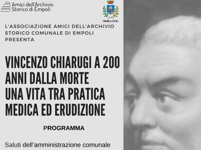 “Vincenzo Chiarugi a 200 anni dalla morte. Una vita tra pratica medica ed erudizione”. Questo il titolo dell’incontro celebrativo organizzato dal Comune di Empoli, in collaborazione con l’associazione Amici dell’Archivio storico comunale, in vista del giorno dell’importante bicentenario della morte del precursore della psichiatria moderna.