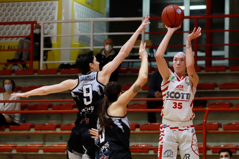 Come, dove e quando la Scotti riprenda in mano questa partita vincendola poi di un punticino, nessuno riuscirà mai a scoprirlo, ma tant’è. L’Use Rosa batte anche San Martino di Lupari per 58-58 mantenendo così l’imbattibilità interna e proseguendo con il carattere di sempre la sua corsa verso la salvezza. La svolta ad una partita che le biancorosse giocano male fino all’intervallo arriva appunto dopo il riposo lungo e, in particolare, dopo essere andata sotto di 13 punti, momento nel quale coach Cioni chiama timeout. Da quel minuto esce una squadra diversa come faccia e come intensità e, grazie ad un parziale di 10-0, si rimette in carreggiata e poi se la gioca in fondo quando, paradossalmente, prende i due punti pur perdendo in modo banale la palla decisiva. Si potrebbe dire che era destino che i punti restassero a Empoli, ma ci piace pensare che ad indirizzare il destino sia stato il carattere di una squadra che, guidata al solito dal suo ‘faro’ Mathias, non ha mai mollato riuscendo a coronare il suo obiettivo. Sarà stata brutta per metà partita, avrà giocato in modo un po’ confusionale anche nei momenti decisivi, non sarà stata la squadra spumeggiante ammirata altre volte ma la classifica parla fin troppo chiaro.