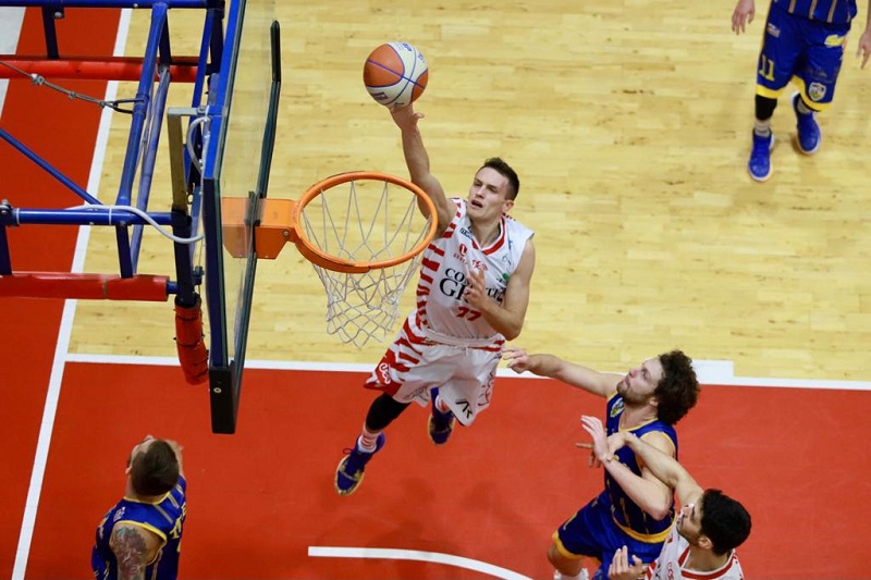 Non sappiamo se esiste un'Use Computer Gross perfetta nella mente del suo coach Alessio Marchini ma, se esiste, di sicuro non è molto diversa da quella che strapazza Piombino per 90-68. Dopo una prima metà partita in equilibrio perfetto o quasi, la marea biancorossa inizia a montare alla fine della seconda frazione e rompe gli argini al ritorno in campo quando, con 34 punti nel parziale a fronte degli appena 14 subiti, la squadra fa vedere di gran lunga il più bel basket di quest'anno. Il tutto con un sontuoso Villa in cabina di regia, con un Crespi dominante e con un Antonini che, al di là dei 12 punti segnati, chiude con 31 minuti in campo su 40, dimostrando una volta di più di aver ormai fatto il salto da promessa a giocatore da quintetto.