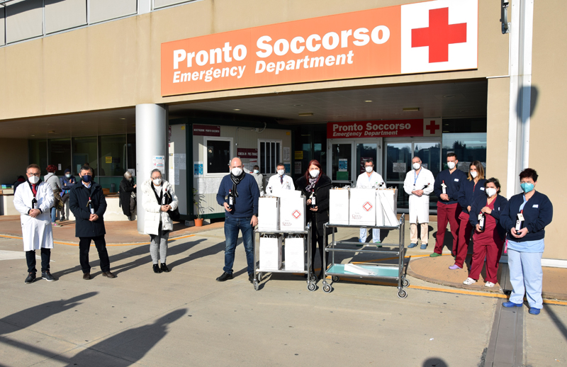 100 bottiglie di Rosso di Montalcino DOC per ringraziare il personale dell’Azienda ospedaliero-universitaria Senese per l’assistenza ricevuta. È il gesto di Michele Cannoni, ricoverato per Covid-19 all’ospedale Santa Maria alle Scotte dal 22 marzo al 2 aprile. Completamente guarito, Michele Cannoni ha deciso di esprimere la sua gratitudine a medici, infermieri e OSS che lo hanno preso in cura e agli addetti alle pulizie, donando loro 100 bottiglie di Rosso di Montalcino DOC, annata 2017, insieme alla moglie, Barbara Nannetti, titolare di una tenuta vitivinicola nel territorio ilcinese.