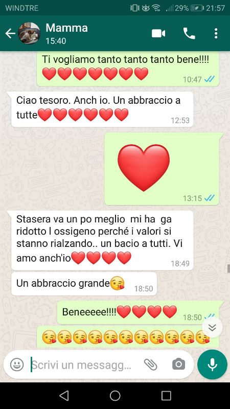 "La nostra mamma non ce l'ha fatta. La nostra mamma è stata portata via con un'ambulanza il 6 novembre- prosegue Eleonora in un lungo e commovente post-. Qualche giorno con il casco. Eravamo preoccupati, senza dubbio, ma sereni. La nostra mamma non aveva alcuna malattia pregressa. La nostra mamma stava bene. La nostra mamma aveva 55 anni. Questi sono i messaggi che è riuscita a scambiarsi con noi quando aveva il casco. Cioè, quando aveva il casco e vedeva molto male la tastiera del telefono. Un giorno è stata intubata. Eravamo positivi: faremo tutto quello che bisognerà fare, aspetteremo tutto il tempo che bisognerà aspettare. Dopo dieci giorni la tragica chiamata dall'ospedale: ci vuole un miracolo. Le fanno una terapia sperimentale, bisogna crederci e mandarle tanta forza, "il gioco di squadra di solito funziona" mi dice una dottoressa. È così. Migliora. Il primario è entusiasta, lo sono anche gli anestesisti, "che sono sempre i più cauti". La mattina di due giorni dopo chiamo il mio babbo, come sempre. Siamo felicissimi. Attacco, e mentre lo faccio penso: "Che cavolo però. Aspettare le due per avere buone notizie è un po' una noia". L'ospedale chiama sempre di primo pomeriggio, una volta al giorno. Dopo 15 minuti ci chiamano il primario e l'ospedale. La nostra mamma ha avuto un tracollo nella notte. È morta".