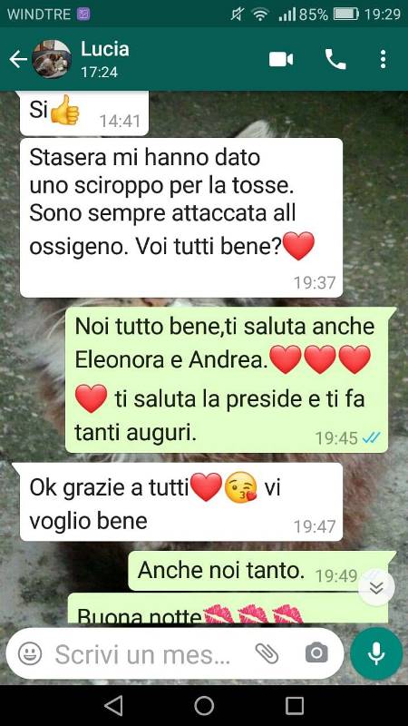 "Vi chiedo cortesemente la massima condivisione. La mia mamma è morta il 22 novembre. Lucia aveva 55 anni. Lucia lascia un marito della stessa età e due figli, di 24 e 21 anni. Lucia stava bene poche settimane fa, quando, come ogni giorno, l'ho chiamata al telefono. Erano giorni che tossiva ininterrottamente. Mi ha detto: "Tesoro, scusami, ci sentiamo quando mi passa questa tosse"". Queste le parole del post condiviso da Eleonora Proietti. Sua madre, Lucia Cosimi, è morta di covid. Le parole preoccupate, le emozioni, le rassicurazioni sono contenute nei messaggi che si sono scambiate madre e figlia prima che la 55enne, maestra fiorentina, morisse.