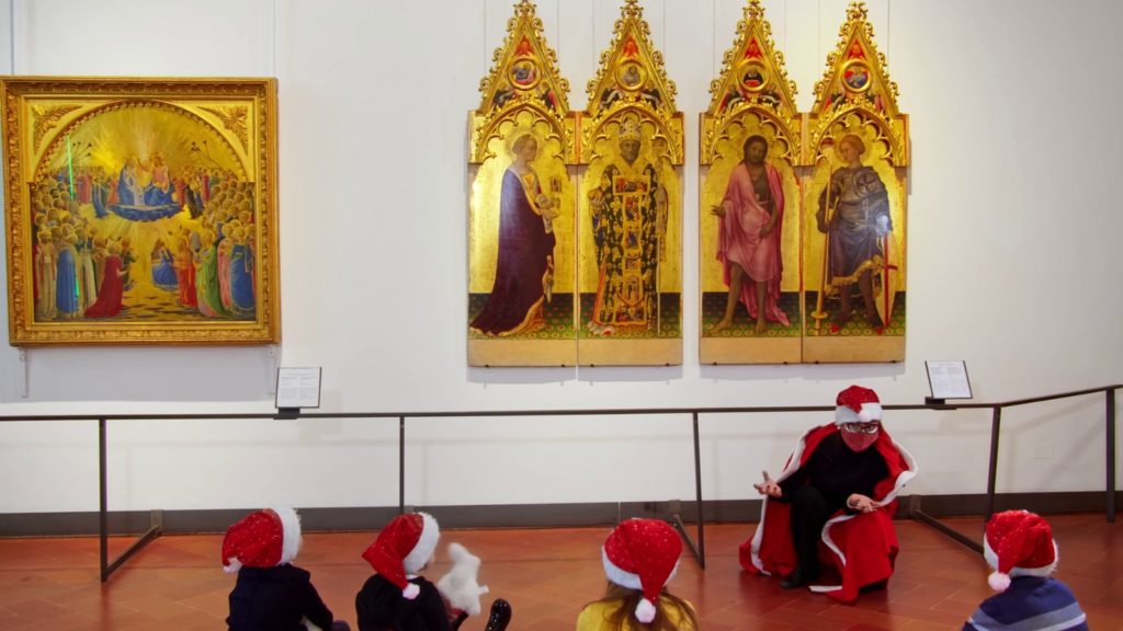 Lo ‘SPECIALE NATALE’: Il video, che sarà online il 25 dicembre, segue e racconta da vicino l’avventura di un gruppo di bambini che, accompagnati da una “Guida Babbo Natale”, vanno alla scoperta dei capolavori degli Uffizi curiosando tra le sale del museo chiuso.