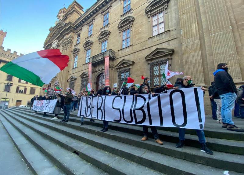 Ieri pomeriggio, nell’ultima domenica prima di Natale, alcune centinaia di persone si sono ritrovate in piazza San Firenze per una manifestazione in favore di Lorenzo, Fabio e Libero, tre studenti sottoposti a misure restrittive della libertà personale dallo scorso 25 novembre per aver svolto un volantinaggio di protesta contro il Governo in una scuola fiorentina. Presenti e intervenuti al microfono anche importanti rappresentanti istituzionali, tra cui il Senatore della Lega William De Vecchis, il Consigliere Regionale di Fratelli d’Italia Francesco Torselli e un nutrito gruppo di consiglieri comunali arrivati da numerose città.