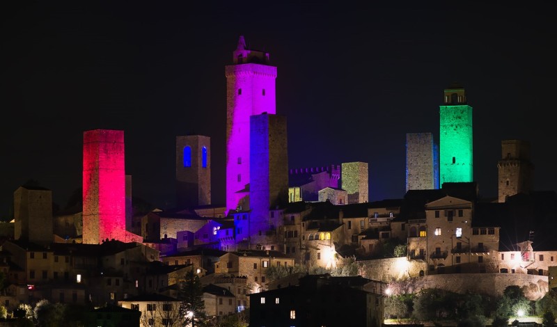 Le celebri torri medievali di San Gimignano si colorano di speranza in occasione del Natale ai tempi del coronavirus e regalano al mondo immagini inedite e suggestive. Fino al 6 gennaio il celebre skyline della città vivrà di un nuovo colpo d’occhio grazie alle torri illuminate con fari a led colorati. E’ il progetto ideato e realizzato dal Comitato Partite Iva di San Gimignano con il patrocinio e in collaborazione con l’amministrazione comunale, le associazioni di categoria, Confcommercio e Confesercenti, l'Associazione Strutture alberghiere di San Gimignano, l'associazione del Carnevale, i Cavalieri di Santa Fina e l'Associazione Pro Loco.
