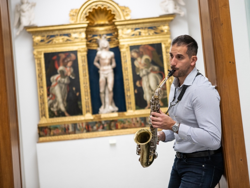Gli auguri arrivano attraverso un breve viaggio musicale nei sei luoghi museali di Empoli. Il sassofono del maestro Omar Daini, insegnante del Centro Attività Musicali, ci accompagna nelle sale del Museo del Vetro, nella pinacoteca della Collegiata, nella Galleria d’Arte Moderna del palazzo comunale, al museo paleontologico, alla Casa di Ferruccio Busoni e ovviamente nella casa natale di Pontormo a Pontorme.