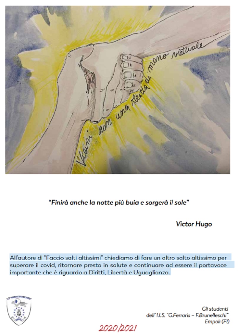 "All’autore di “Faccio salti altissimi” chiediamo di fare un altro salto altissimo per superare il covid, ritornare presto in salute e continuare ad essere il portavoce importante che è riguardo a Diritti, Libertà e Uguaglianza", questo il messaggio dei ragazzi.