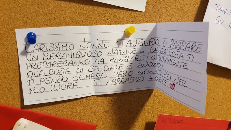 Da Casa di Marta sono state tante le videochiamate tra gli ospiti e i loro parenti durante le festività. Sulle tute di protezione gli operatori hanno dipinto immagini natalizie e fuori dal cancello della struttura è stata posizionata una cassetta colorata per raccogliere pensieri e messaggi dei passanti rivolti ai nonni. Sono stati numerosi i biglietti di auguri, le foto e le dimostrazioni di affetto e vicinanza.