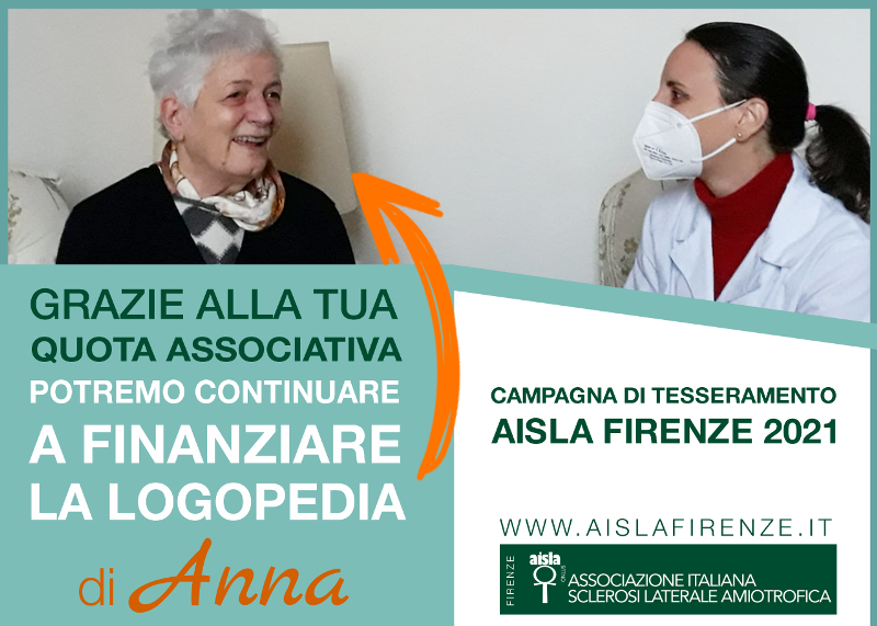 Sono proprio loro, quelli per cui ci spendiamo ogni giorno, ad animare la campagna di tesseramento e donazioni per il 2021 di AISLA Firenze. Persone come Giancarlo, Roberto e Anna, che, insieme ai loro familiari, sono stati subito disponibili a metterci la faccia in nome di tanti altri come loro. Con le quote raccolte potranno continuare ad avere servizi come la fisioterapia, la logopedia, l’idrokinesiterapia e i Gruppi di Aiuto (adesso si svolgono online).