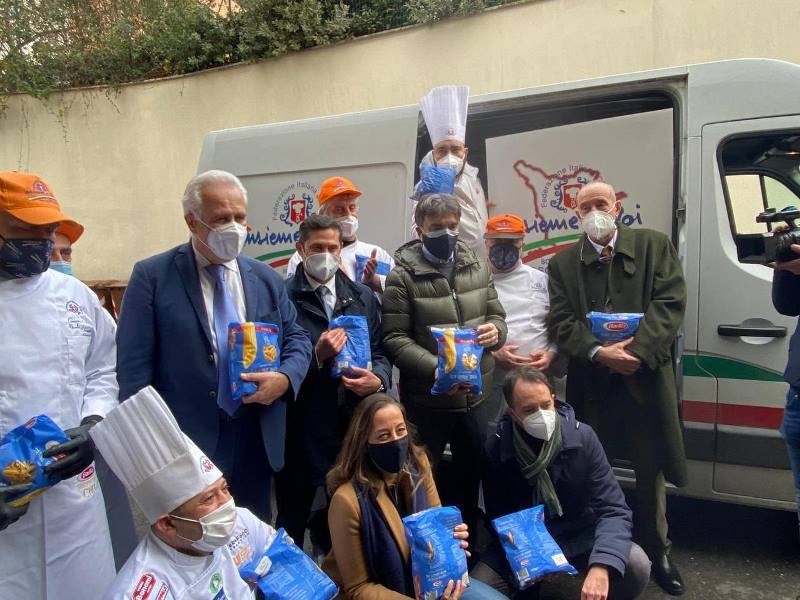 Nel capoluogo toscano la consegna dei 500 chili di pasta necessari a preparare il pranzo, poi elaborato dagli chef fiorentini guidati da Massimiliano Catizzone, è avvenuta alla presenza del presidente della Regione Toscana Eugenio Giani, degli assessori del Comune di Firenze al welfare Sara Funaro e alle attività produttive Federico Gianassi, oltre che dei presidenti di Fipe Confcommercio Toscana Aldo Cursano e del Dipartimento Solidarietà Emergenze della FIC Toscana Gian Carlo Gliceri e del direttore di Confcommercio Toscana Franco Marinoni. A riceverli, il presidente della Fondazione Solidarietà Caritas Firenze Vincenzo Lucchetti.