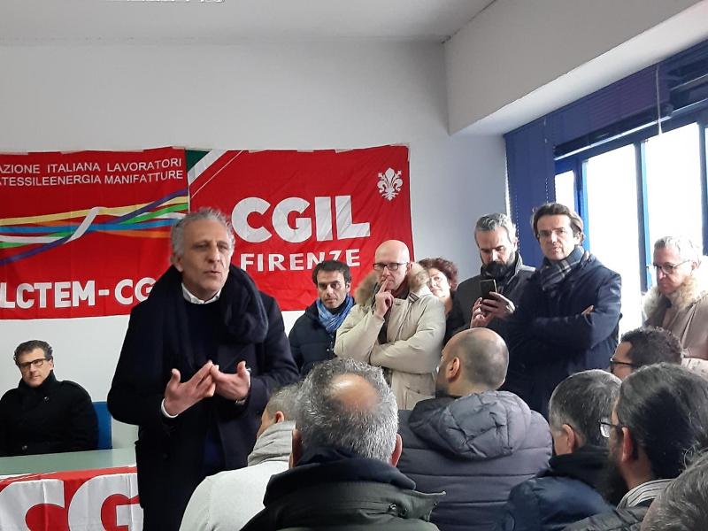 Assemblea alla Vibac, il sindacalista Giuseppe Dentato motiva i lavoratori a rischio licenziamento (foto gonews.it)