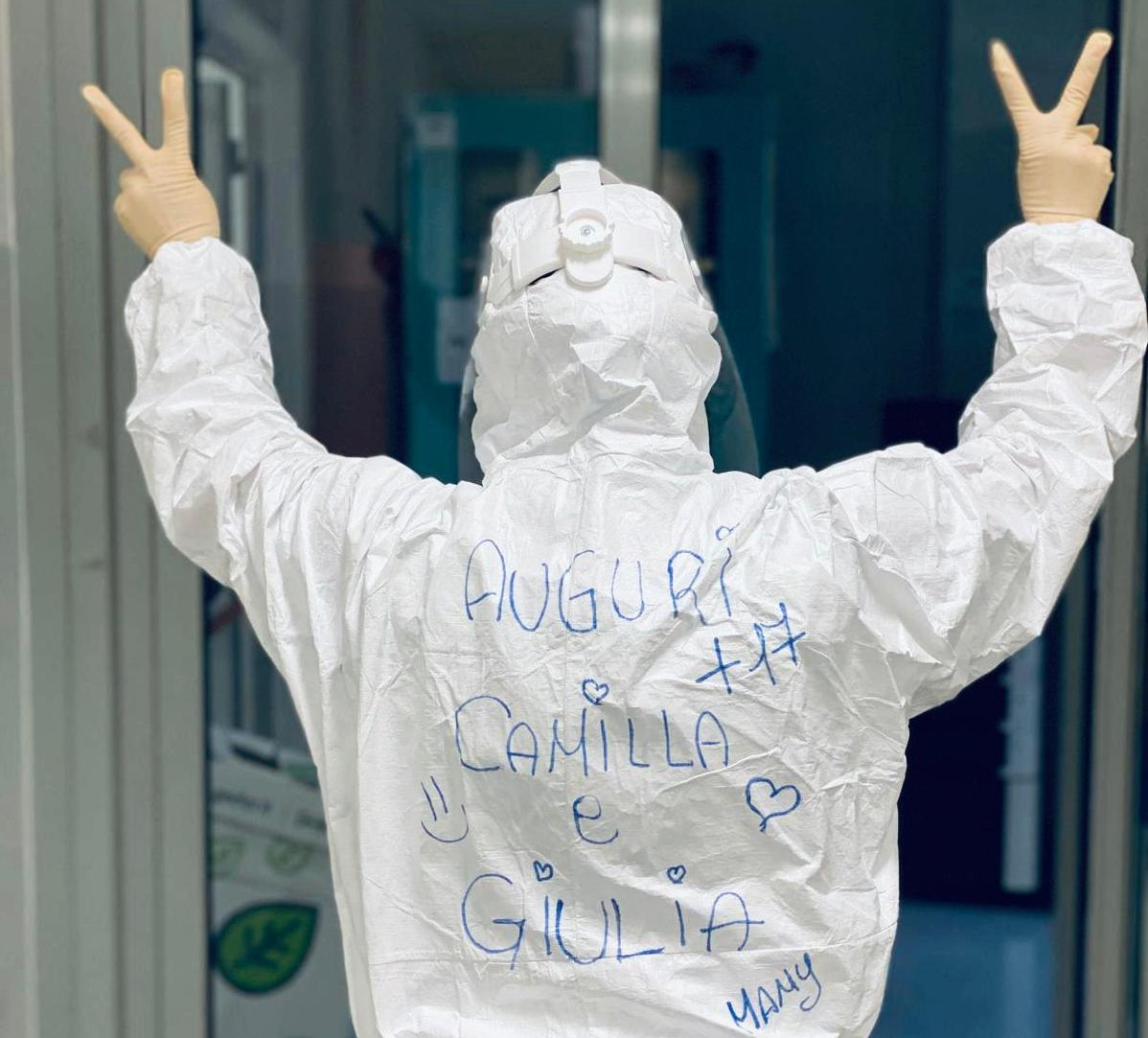Gli auguri di una mamma infermiera scritti sulla tuta anticontagio