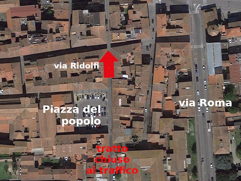 Chi arriva da Via Ridolfi lato Via Salvagnoli, all’intersezione con Via Giuseppe del Papa, dovrà svoltare obbligatoriamente a sinistra. Chi arriva da Via del Papa dovrà proseguire diritto fino a Via Roma, non sarà possibile svoltare su Via Ridolfi per raggiungere Piazza del Popolo.