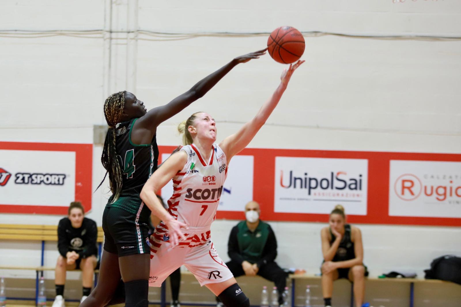 La prima sconfitta stagionale interna della Scotti contro la Passalacqua Ragusa è figlia sì della differenza di valori ma anche di questi due fattori che stavolta mancano e che portano al risultato finale di 57-69. A dire il vero l’Use Rosa, pur senza brillare, in partita ci resta almeno per tutto il terzo periodo avendo anche l’ultimo possesso per sorpassare le rivali ma, proprio quando il clichet della sfida di Davide a Golia ti impone di non sbagliare niente, arrivano alcune distrazioni che la squadra finisce per pagare a caro prezzo.
