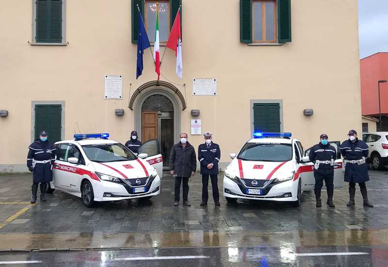 L’Amministrazione comunale di Quarrata sceglie l’energia verde per il proprio parco mezzi: dovendo sostituire una serie di veicoli ormai vecchi, il Comune ha infatti deciso di investire in auto ad alimentazione elettrica. Stamattina, martedì 5 gennaio, il Sindaco Marco Mazzanti ed il Comandante della Polizia Municipale Marco Bai hanno presentato le due nuove auto elettriche appena arrivate in dotazione alla Polizia Municipale di Quarrata. Si tratta di due Nissan Leaf versione N-Connecta, di colore bianco e batteria da 40 kwh.