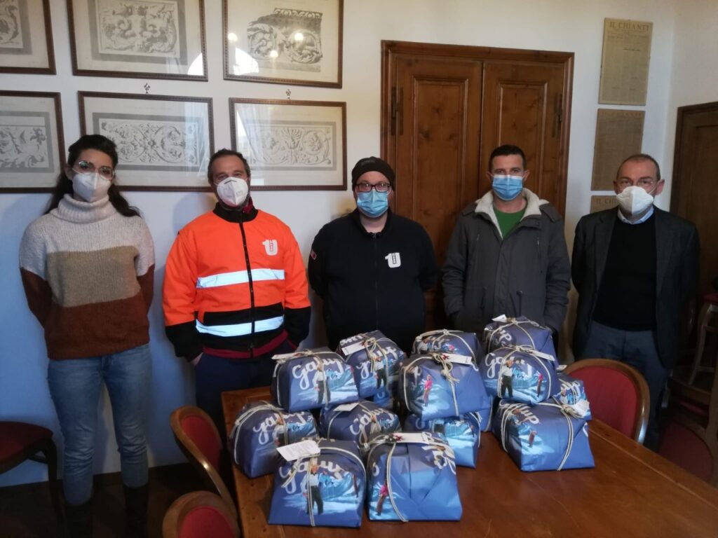 Ancora un'occasione a Greve in Chianti per incontrare quella mano che istituzioni e comunità tendono unite verso chi si trova in condizioni di maggior bisogno e di coloro per cui l'emergenza si avverte in maniera più forte. La solidarietà che non nasce con il Coronavirus ma si rafforza in un tessuto, dove da tempo sono radicate esperienze solidali, assume nel Chianti nuovi volti, nuove declinazioni legate ad esperienze che confermano la volontà di esprimere vicinanza ai soggetti fragili. Dalla generosità dei lavoratori in cassa integrazione del cementificio Sacci, promotori da quasi tre mesi di un presidio di protesta aperto h24 nei pressi dello stabilimento di Testi, arriva la donazione di una cinquantina di panettoni, regalo ‘inaspettato’ per i dipendenti da parte dell'azienda Buzzi Unicem. I dessert natalizi sono stati offerti dai dipendenti della Sacci al sindaco Paolo Sottani all'assessore Ilary Scarpelli perché siano distribuiti alle famiglie più bisognose.