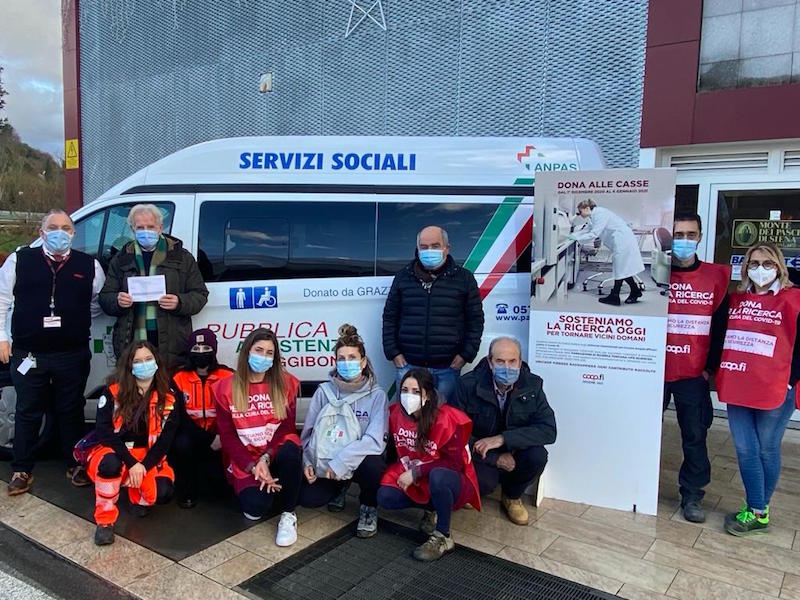 Tre donazioni che fanno sentire la vicinanza del territorio alla sfida dei ricercatori di Toscana Life Sciences. Sono quelle della Misericordia e della Pubblica Assistenza di Poggibonsi e del Cna pensionati di Poggibonsi e Siena. Tre associazioni, rappresentative della comunità locale, che negli scorsi giorni si sono recate al Coop.Fi di Salceto per dare il proprio contributo alla raccolta fondi di Unicoop Firenze “Sosteniamo la ricerca oggi per tornare più vicini domani”.