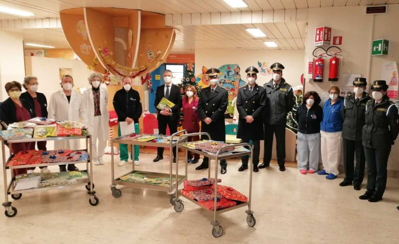 Le donne e gli uomini delle Fiamme Gialle del Comando Provinciale di Siena hanno portato doni e gadget per i bambini ricoverati cercando di regalare loro un po’ di allegria e spensieratezza.